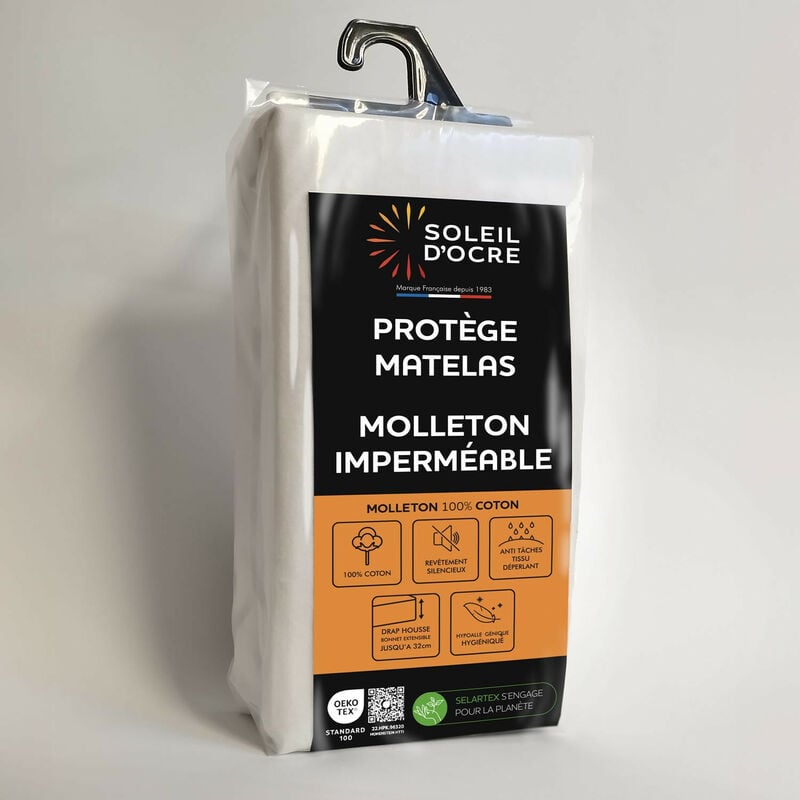 Soleil D Ocre - Protège matelas 140x200 cm en coton molleton forme drap housse, par Soleil d'ocre