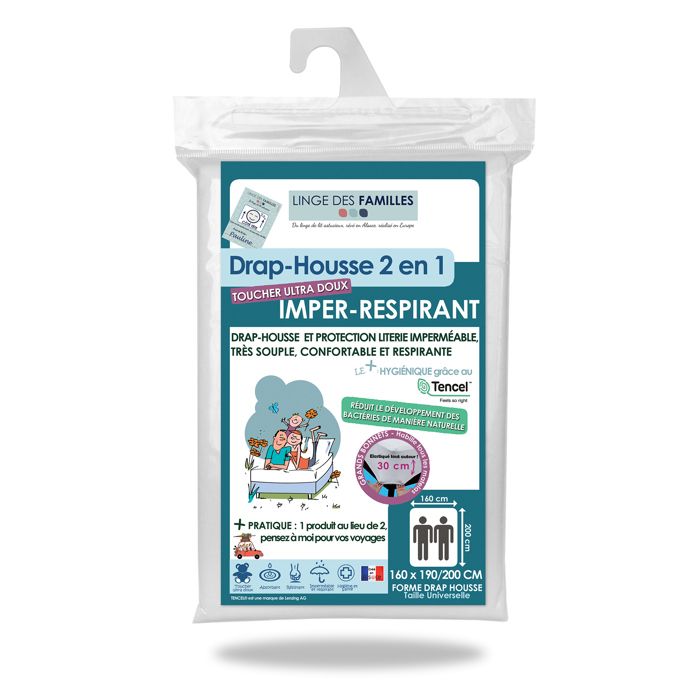 Linge des Familles - Protège Matelas 160x200 cm - Imperméable & Respirant - Alèse Souple & Silencieuse - Bonnet 30 cm Elastiqué - Label Oeko-TEX® Standard 100 - Made in Europe