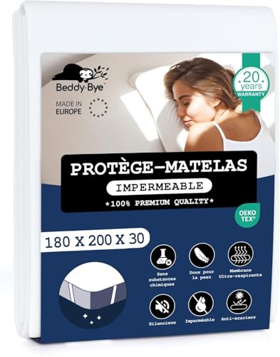 Beddy-Bye Protege Matelas 180x200 Imperméable Respirant Infroissable Certifié Oeko-Tex - Alese 180 x 200 Impermeable avec 4 Coins Élastiques Éco-Responsable - Blanc
