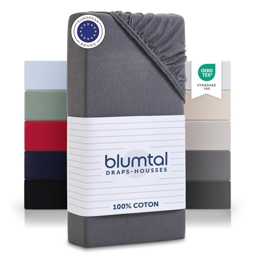 Blumtal Drap Housse 180 x 200 x30 cm Basique en Jersey - Lot de 1-180 x 200 x30 cm - Drap Housse 180 x 200 x30 en 100% Coton - certifié Oeko-Tex - Protege Matelas 180x200 x30 Coton - Couleur Gris