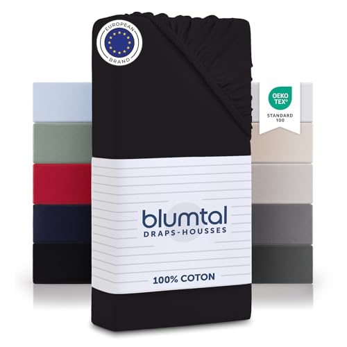 Blumtal Drap Housse 180 x 200 x30 cm Basique en Jersey - Lot de 1-180 x 200 x30 cm - Drap Housse 180 x 200 x30 en 100% Coton - certifié Oeko-Tex - Protege Matelas 180x200 x30 Coton - Couleur Noir