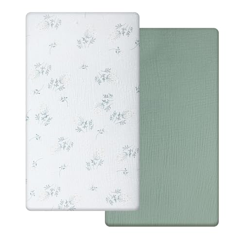 Peepeemax Drap Housse 70x140 cm, Mousseline de Coton Drap Housse Lit Bebe, Protege Matelas Bebe Doux et Respirant pour Lits Bébé, Lit de Voyage et Lit D'appoint, Lot de 2 (Vert)