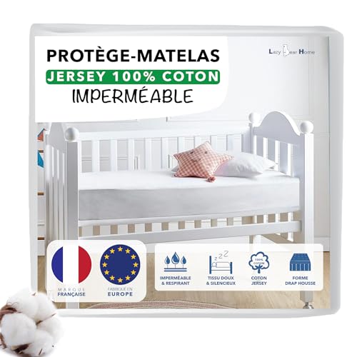 Lazy Bear Home | Protege Matelas Lit Bebe 70x140 cm | Alese Imperméable & Respirante | Jersey 100% Coton | Forme Drap Housse | Hypoallergénique | Protection Douce | Marque Française | Fabriqué en UE