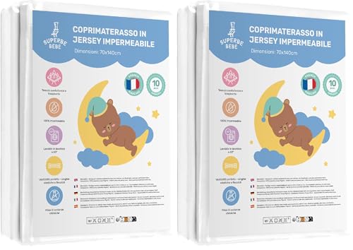 Pikolin Home - Protège-matelas Berceau 70x140 Imperméable en Éponge, Housse de Matelas Respirant et Silencieux, Certifié Oeko-Tex, Élastique - Housse de Matelas Anti-acariens pour Bébé 70 x 140 cm