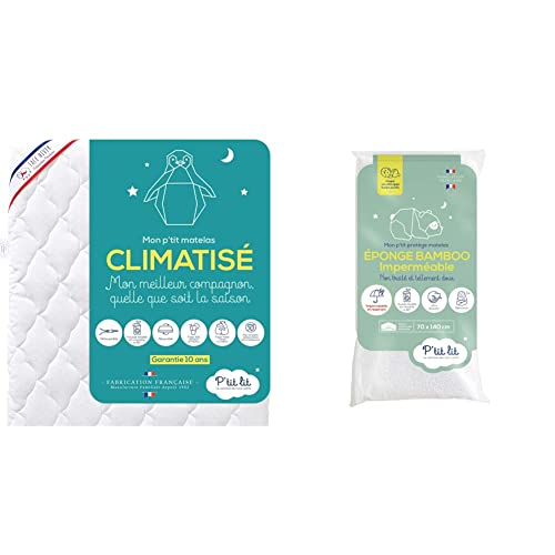 P'TIT LIT - Matelas Enfant/Bébé Indispensable - 70x140 cm - Climatisé & Protège Matelas Bébé Anti Acariens | Alèse Imperméable 70x140 cm - Bouclette 100% Coton - Absorbant et Silencieux - Oeko Tex®