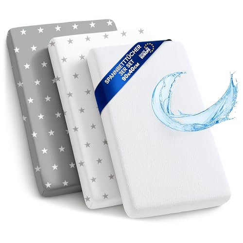 FlyIdeas Lot de 3 Draps Housses Cododo 50x83 cm en Coton Bio – 2 Draps Housses Élastiqués + 1 Protège-Matelas Imperméable – Compatible avec Berceaux Cododo et Matelas Bébé 50x80, 50x85, 40x80
