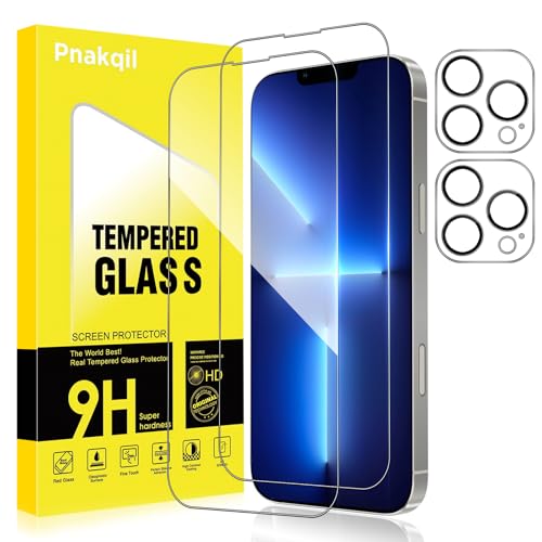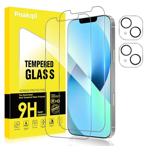 Pnakqil Verre Trempé pour iPhone 13 avec Protection Camera Vitre Protecteur Anti-Rayures Sans Bulles Ultra Résistant Dureté 9H Appareil Objectif Photo Protege HD Film écran Glass,2+2 Pièces