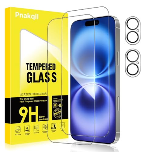 Pnakqil Verre Trempé pour iPhone 16 avec Protection Camera Vitre Protecteur Anti-Rayures Sans Bulles Ultra Résistant Dureté 9H Appareil Objectif Photo Protege HD Film écran Glass,2+2 Pièces