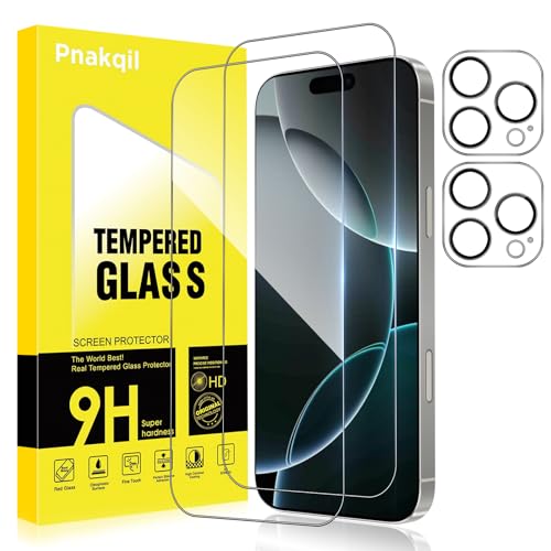 Pnakqil Verre Trempé pour iPhone 16 Pro avec Protection Camera Vitre Protecteur Anti-Rayures Sans Bulles Ultra Résistant Dureté 9H Appareil Objectif Photo Protege HD Film écran Glass,2+2 Pièces