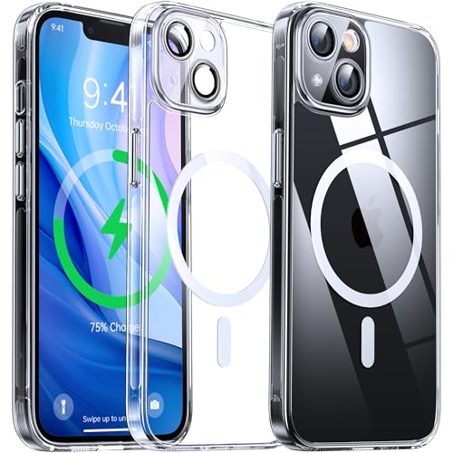 Flyzoo Coque Magnétique Transparente pour iPhone 13 (6.1'') avec Objectif Film, [Compatible avec MagSafe] [Protection Antijaune & Antirayure & Antichoc] Etui Housse Dur avec Silicone Bord, Clair