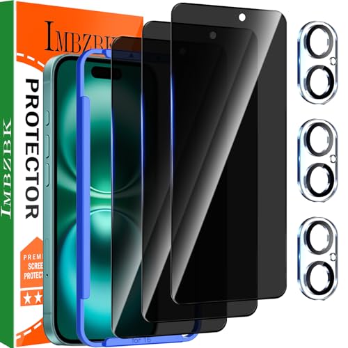 IMBZBK 3 Pièces Verre Trempé pour iPhone 16 Anti Espion Vitre Protection Ecran Protege Accessoire avec 3 Pièces Protection Camera Objectif Coque la Compatibilité