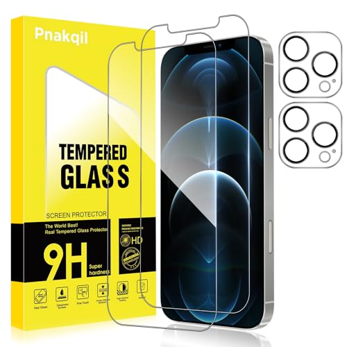 Pnakqil Verre Trempé pour iPhone 12 Pro avec Protection Camera Vitre Protecteur Anti-Rayures Sans Bulles Ultra Résistant Dureté 9H Appareil Objectif Photo Protege HD Film écran Glass,2+2 Pièces