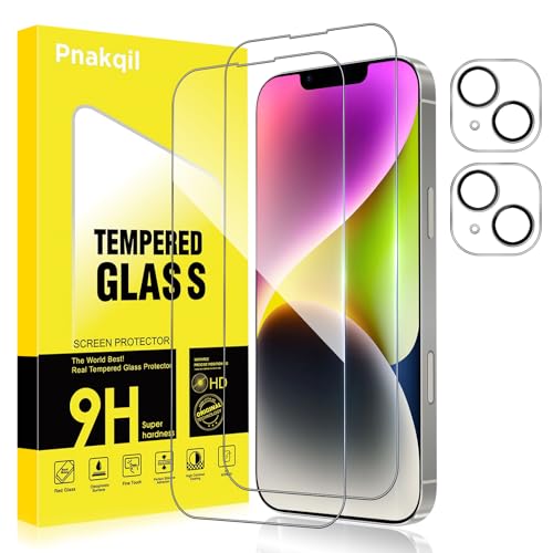 Pnakqil Verre Trempé pour iPhone 14 avec Protection Camera Vitre Protecteur Anti-Rayures Sans Bulles Ultra Résistant Dureté 9H Appareil Objectif Photo Protege HD Film écran Glass,2+2 Pièces