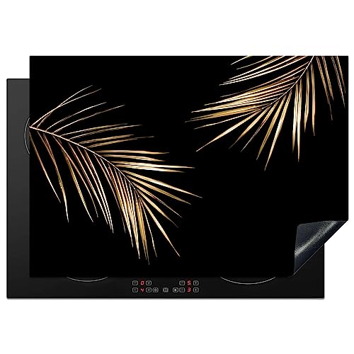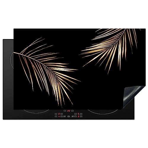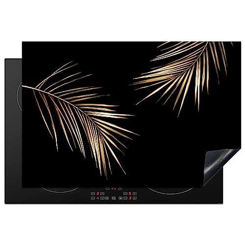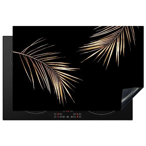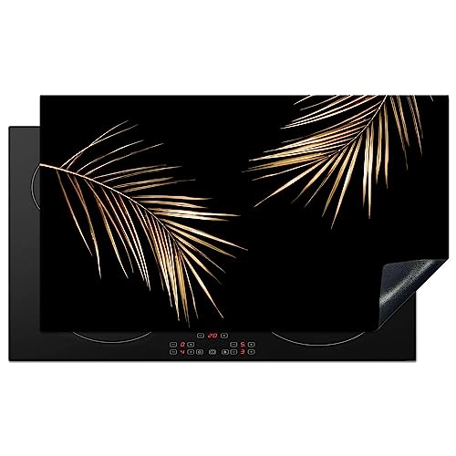 KitchenYeah© Protège Plaque Induction 80x52 cm Deco Cuisine Accessoire Pratique Protection De Vitroceramique Kitchen Gadget Feuilles - Plantes - Or - Noir - Luxe