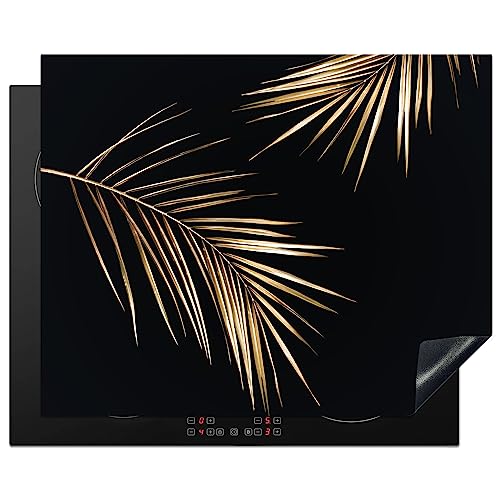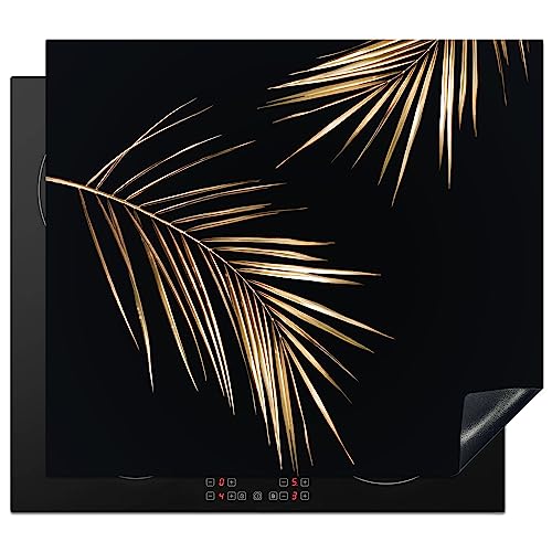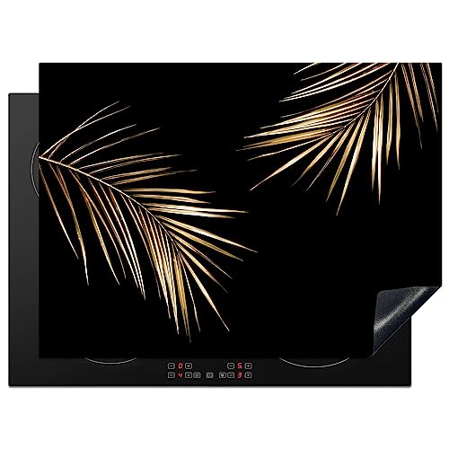 KitchenYeah© Protège Plaque Induction 60x52 cm Deco Cuisine Accessoire Pratique Protection De Vitroceramique Kitchen Gadget Feuilles - Plantes - Or - Noir - Luxe