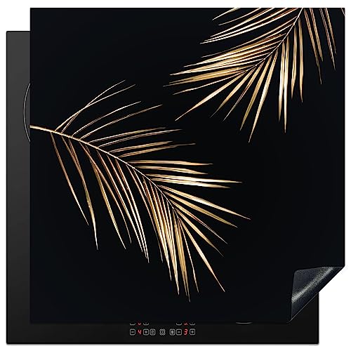 KitchenYeah© Protège Plaque Induction 78x78 cm Deco Cuisine Accessoire Pratique Protection De Vitroceramique Kitchen Gadget Feuilles - Plantes - Or - Noir - Luxe