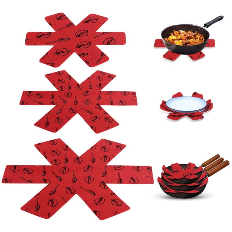 6 Pièces Protege Poele Protection Poele et Casserole Dessous de Plats, Coussinets D'intercalaire Séparé et Protéger Les Surfaces de Votre Cuisine pour Éviter Les Rayures, 3 Tailles (20/30/38cm)