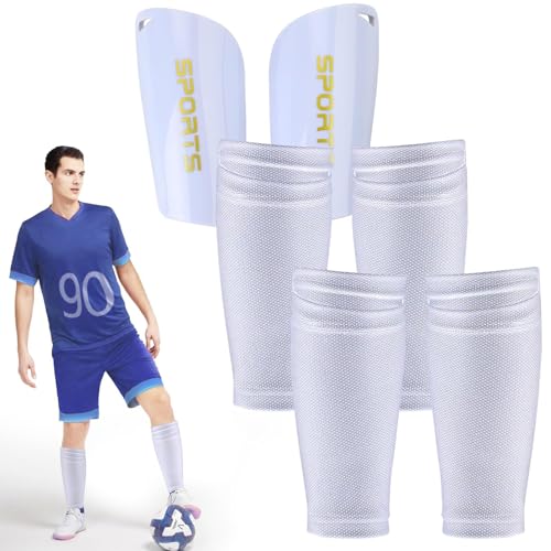 2 Paires Protege Tibia Foot Adolescents Blanc Chaussette Protège Tibia Foot avec Manchon Anti Taille M Conception Ergonomique Respirant et Confortable pour Une Protection Complète Pendant Les Sports