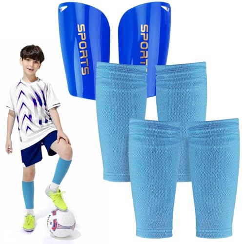 2 Paires Protege Tibia Foot Enfant Bleu Chaussette Protège Tibia Foot avec Manchon Anti Taille S Conception Ergonomique Respirant et Confortable pour Une Protection Complète Pendant Les Sports