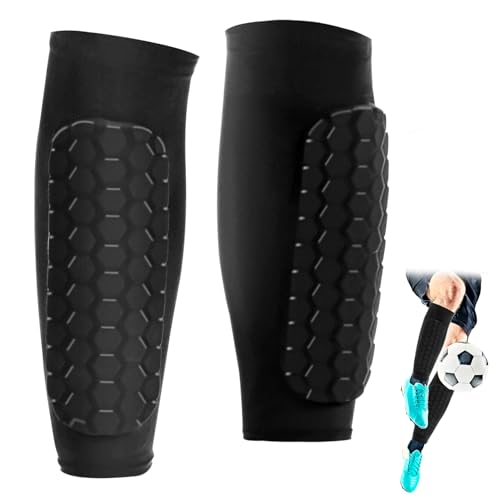 2 Paires Protege Tibia Foot Adolescents Noirs Chaussette Protège Tibia Foot avec Manchon Anti Taille M Conception Ergonomique Respirant et Confortable pour Une Protection Complète Pendant Les Sports