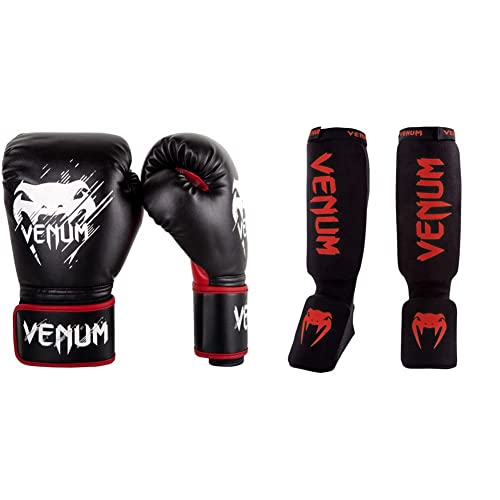 Venum Contender Gants de Boxe Mixte Enfant, Noir/Rouge, 8 oz & Kontact Protège Tibia Mixte Adulte, Noir, Taille Unique