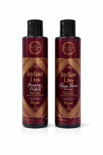 NOIA HAIR Indian Liss Protein Gold – Lissage Capillaire Professionnel Amla, Caviar & Ginseng Indien – Réduit Frisottis & Volume, Nourrit et Apporte Brillance – Kit Lissage Cheveux - 2 X250ML