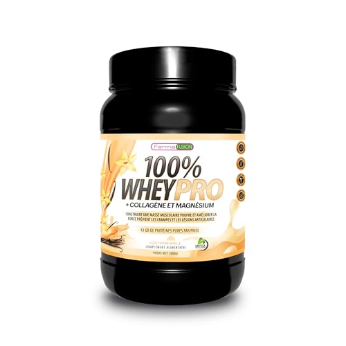 Farma Fusion 100% Whey Protein avec Collagène et Magnésium | 43 g de protéines pures par portion | 0% de sucres | Vanille 1000 g