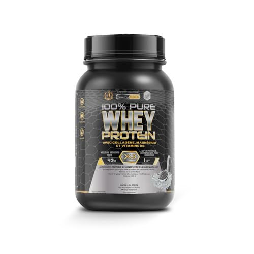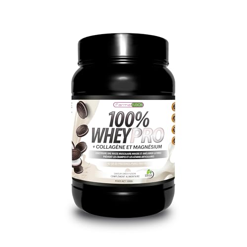 Farma Fusion 100% Pure Whey Protein avec Collagène et Magnésium | 43 g de protéines pures par portion | 0% de sucres | Goût biscuit, 1000 g