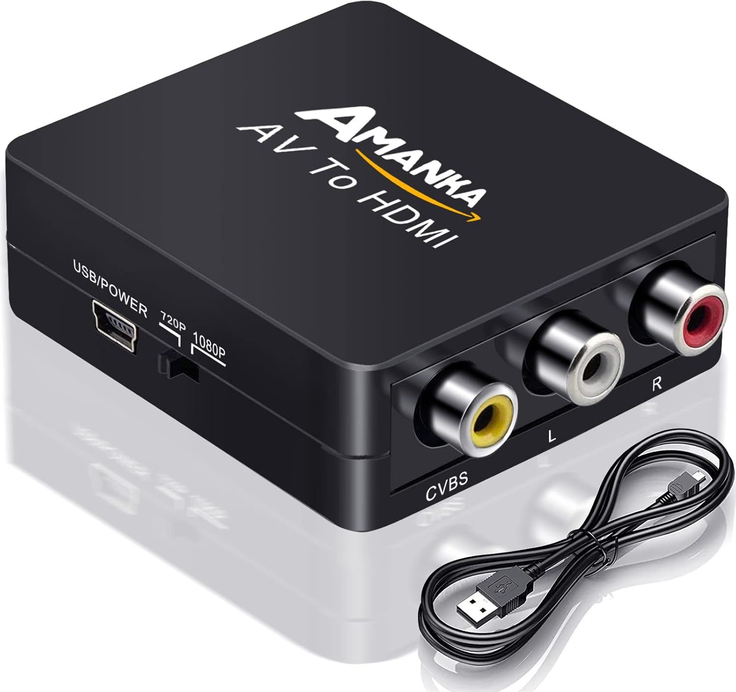 AMANKA Adaptateur RCA vers HDMI, Convertisseur AV CVBS vers HDMI HD 1080P avec Câble HDMI pour PC Xbox PS4 TV STB Blu Ray Caméra DVD