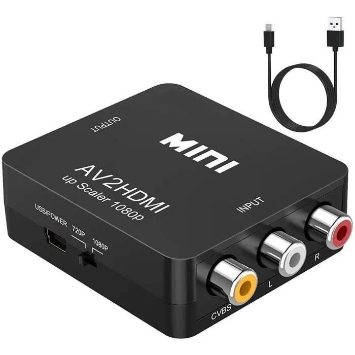 Adaptateur Rca Vers Hdmi Convertisseur Av En Hdmi, 3Rca Composite Av Vers Hdmi Convertisseur Prise En Charge 1080P Avec Av Câble Et Usb Câble Pour Pc/Xbox/Ps4/Ps3/Tv/Stb/Vhs/Dvd/Camera/Wii