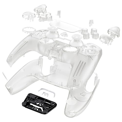 eXtremeRate Luna Coque Redessinée Complet Boutons Touchpad Cover pour ps5 Manette BDM-030/040/050,Étui de Replacement,Custom Replacement Top Bottom Couvercle Shell pour ps5 Controller,Clair
