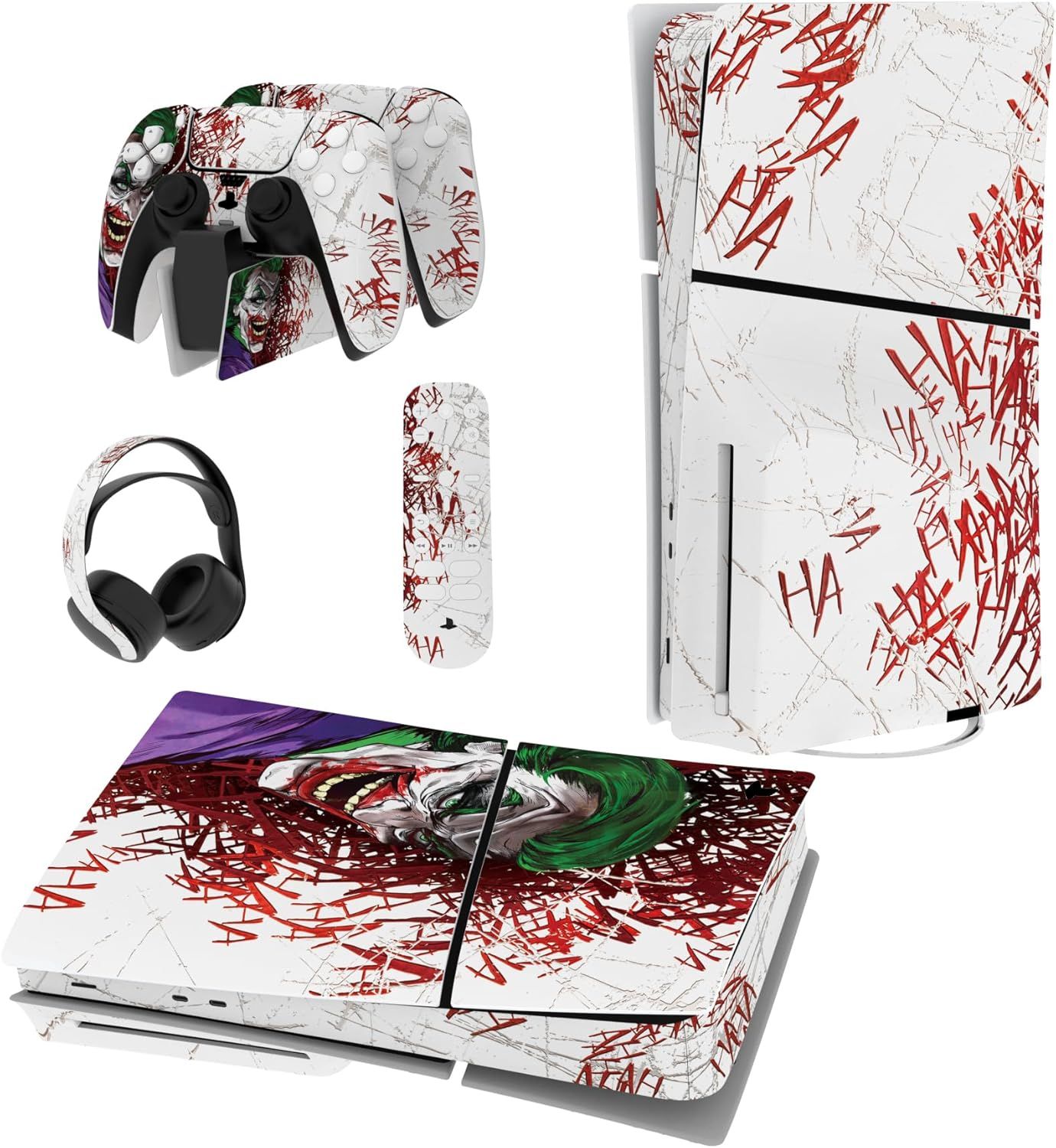 Autocollant Protection pour ps5 Slim Standard Console, Sticker Skin pour ps5 Manette & Télécommande & Casque & Station de Charge,Disc Edition-Clown Hahaha
