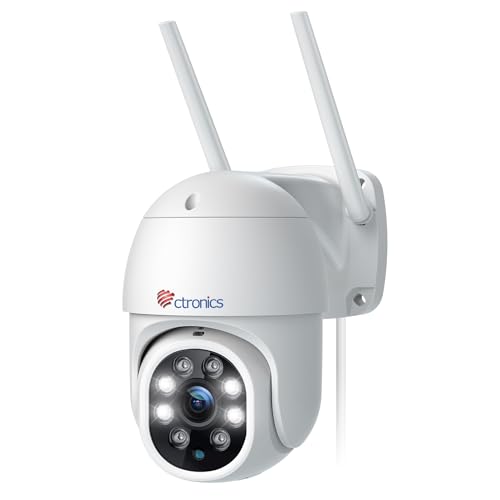 Ctronics Caméra Surveillance WiFi Exterieure, 360° PTZ IP Camera Nocturne Couleur 30M, Détection Humaine & Suivi Automatique, Montage Mural/Au Plafond, Audio Bidirectionnel (Blanc) (1)