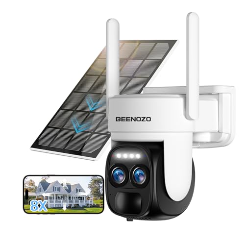 [8X Zoom Hybride] 4K Camera Surveillance WiFi Exterieure sans Fil Solaire, 360°PTZ Caméra IP Batterie, avec Panneau Solaire, Détection Humaine AI, Vision Nocturne Couleur, Sirène, Audio Bidirectionnel