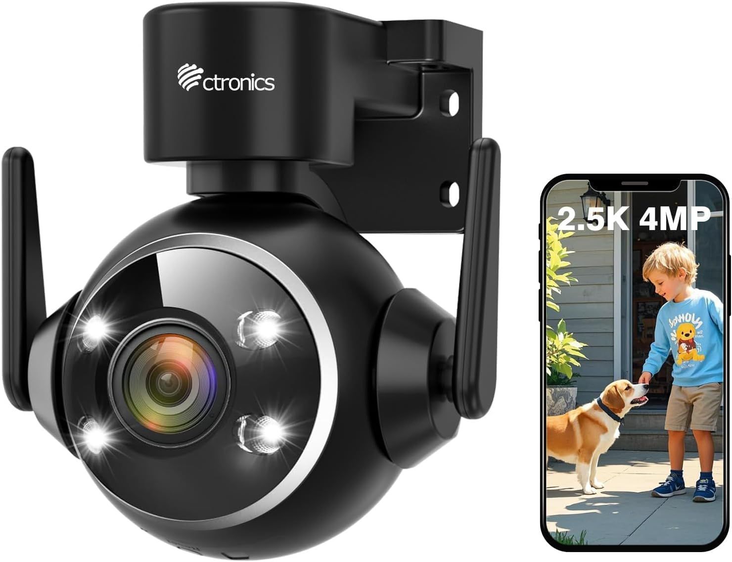 Ctronics 5MP Caméra Surveillance WiFi Extérieure, 2,4Ghz/5Ghz WiFi PTZ Camera IP 2880X1620P Couleur Vision Nocturne,Détection Humaine Auto Suivi, Audio Bidirectionnel,IP66 (1) (2)