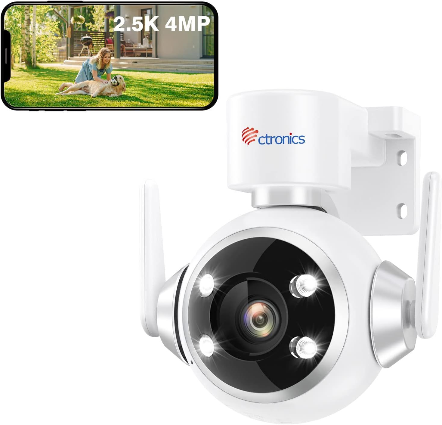 Ctronics Caméra Surveillance WiFi Exterieure, 360° PTZ IP Camera Nocturne Couleur 30M, Détection Humaine & Suivi Automatique, Montage Mural/Au Plafond, Audio Bidirectionnel (Blanc) (2)