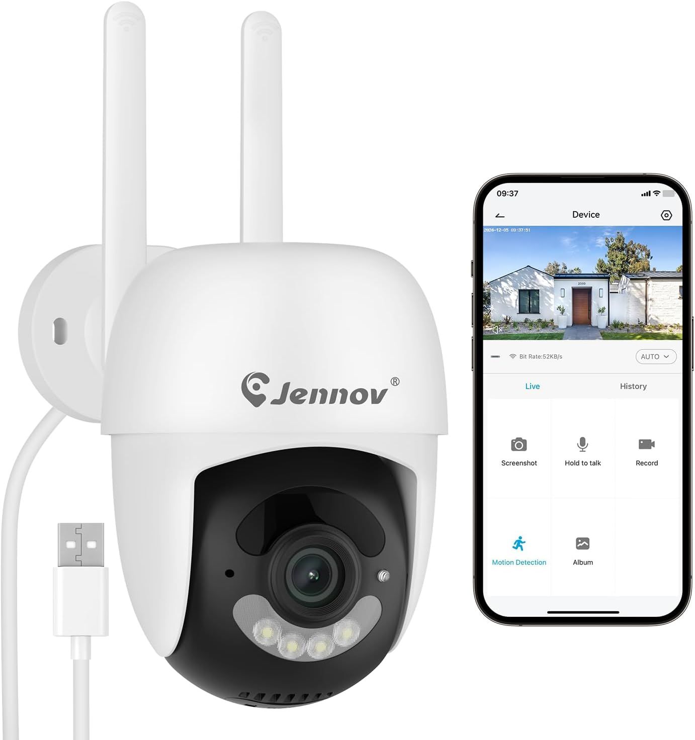JEXNOVASHOP-5MP Caméra Surveillance WiFi Extérieure, 2,4Ghz/5Ghz WiFi PTZ Camera IP 2880X1620P Couleur Vision Nocturne,Détection Humaine Auto Suivi, Audio Bidirectionnel,IP66