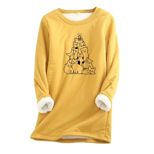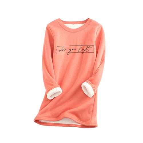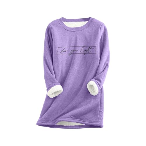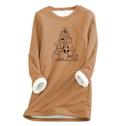 Pull chaud pour femme Sweat-shirt d'hiver chaud sans capuche en coton thermique pour - Pull thermique doublé en peluche pour femme - Manches longues - Pull d'hiver ample - Hauts hauts T-shirts
