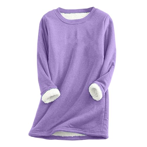 Pull chaud pour femme en polaire doublée - Polaire peluche thermique - Pull d'hiver doublé pour sweat-shirt Teddy sans capuche en coton épais - Grande taille - Couleur unie - Doux et confortable