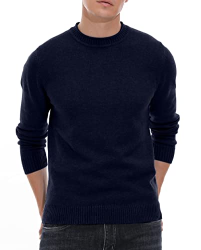 Sailwind Pull À Col Rond Homme Pulls Manches Longues Pull À Col Roulé Chaud Pull en Maille Uni Chandails Casual Slim Fit (Bleu Marine, L)