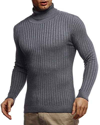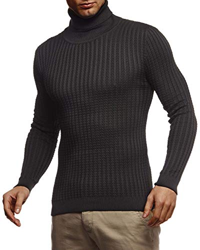 Leif Nelson LN2115 Pull en tricot, chaud, pour homme, à col roulé, pour l'hiver, anthracite, XXL