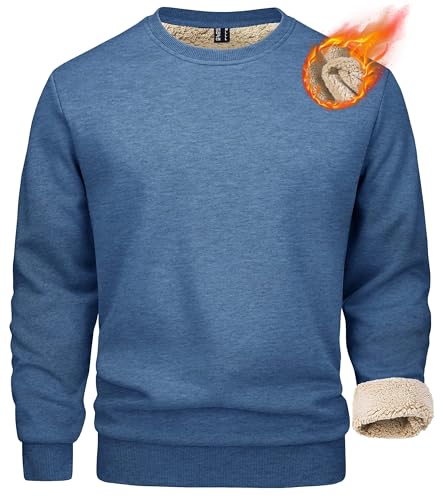MAGCOMSEN Sweat-shirt d'hiver en polaire pour homme - Pull de sport chaud à manches longues avec col rond, Gris/bleu, XL