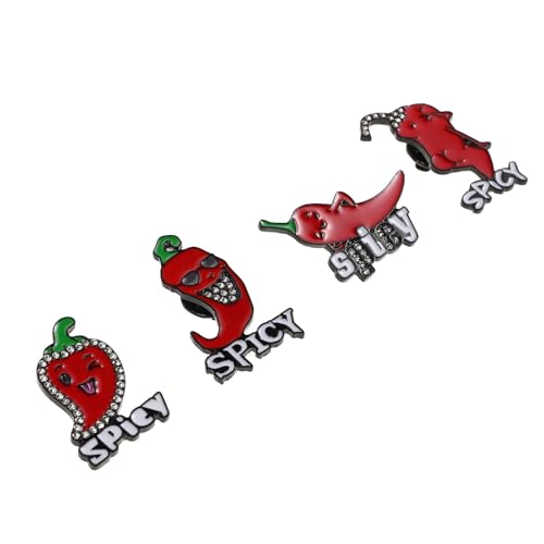 Ciieeo 4 pièces Broche Piment Rouge Alliage Zinc Accessoire Mode et Brillant pour Pull Écharpe Chemise Femme Design Amusant et Moderne
