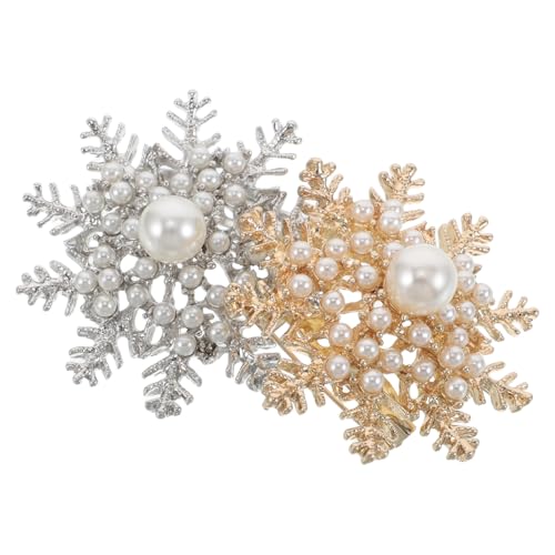 Ciieeo Lot de 2 Broches Flocon de Neige en Perles D’Imitation et Cristaux Épingles Décoratives pour Pull et Chemise Femme Accessoires Polyvalents pour Noël et Fêtes D’Hiver