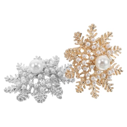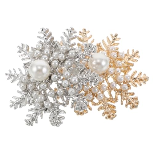 SOIMISS Lot de 2 Broches Flocon de Neige Perles d'Imitation et Cristaux Épingles Décoratives pour Pull Chemise et Châle Femme Accessoire Polyvalent pour Fêtes de Noël et Hiver Présent