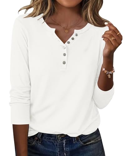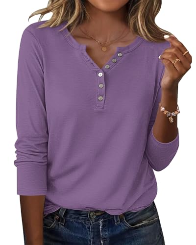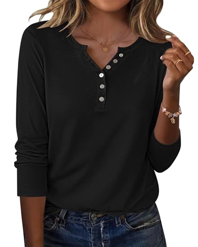 WNEEDU Chemise Femme à Manches Longues Henley T-Shirt Pull Décontracté Tunique Blouse Col V avec Boutons