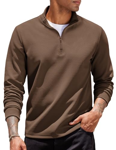 COOFANDY Sweat Homme Demi Zippé Pull Col Camionneur Sweatshirt Col Montant Zip Décontracté Sweat-Shirt sans Capuche Coupe Regular Pullover Marron M
