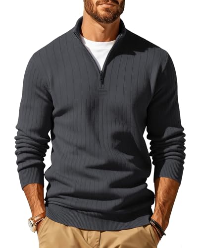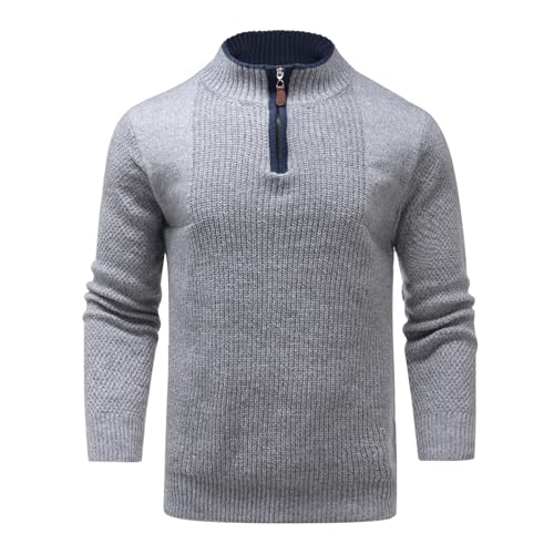 JFAN Pull Homme en Tricot avec 1/4 Zippé Pullover Sweater á Col Montant á Manches Longues Chaud Sweater Casual Solide pour Homme Gris Foncé L
