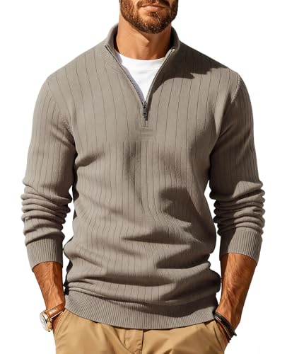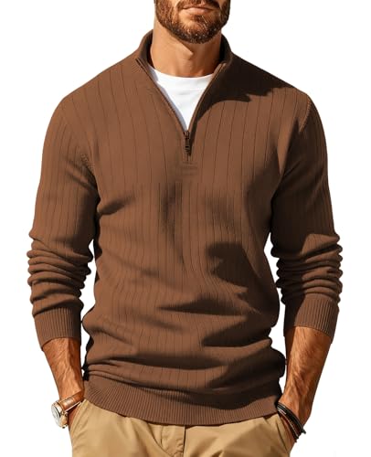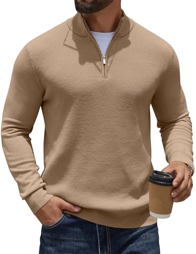 COOFANDY Pull Homme 1/4 Zippé Col Montant Pulls Col Roulé Tops Tricoté Hiver Slim Fit Pulls à Manches Longues Basique Chauds Quarter Zip Pullover Sweater Camel M
