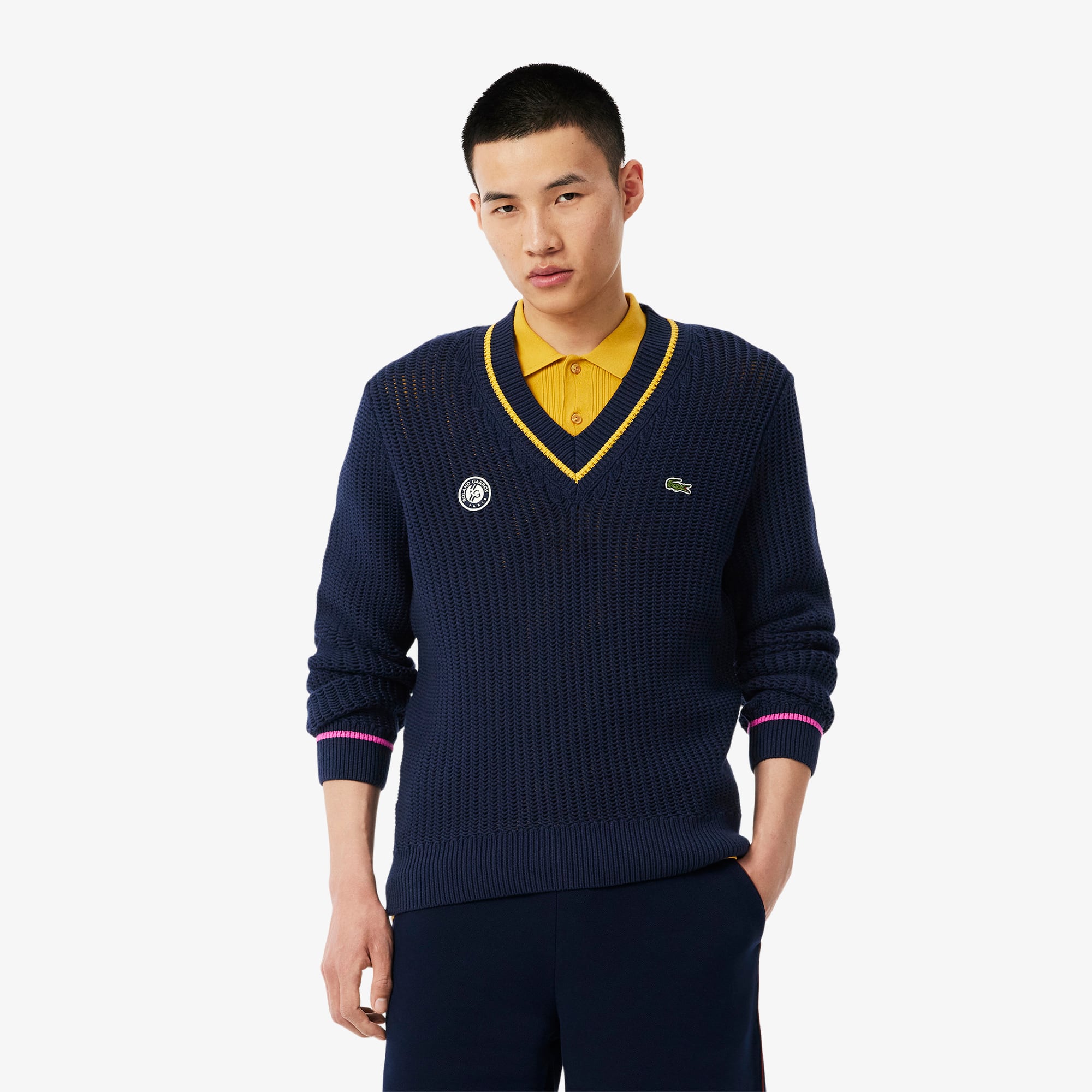 Lacoste Pull col V Édition Roland-Garros Taille S Bleu Nuit